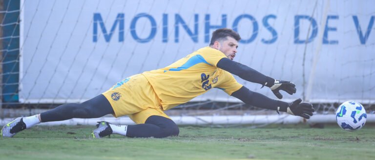 O goleiro Thiago Volpi, em treino do Grêmio - Crédito> Lucas Uebel/Grêmio