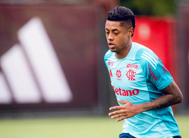 O atacante Bruno Henrique, em treino do Flamengo - Crédito: Adriano Fontes/Flamengo