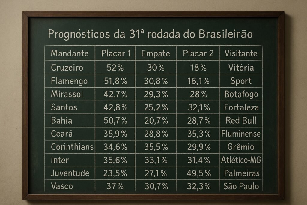 A 31ª rodada do Campeonato Brasileiro não deverá trazer mudanças na acirrada disputa pelo título entre as três equipes postulantes.