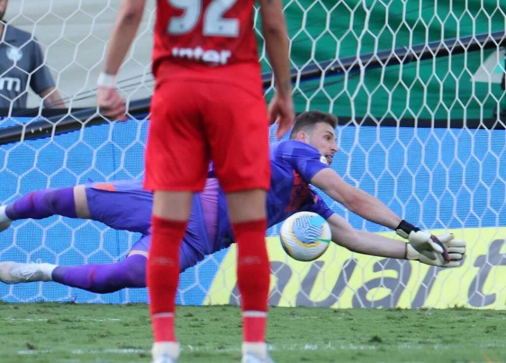 O goleiro Bento defende o pênalti cobrado por Raphael Veiga – Crédito: José Tramontin/athletico O Athletico-PR venceu o Palmeiras por 2 a 0, neste domingo (12), na Arena Barueri, na Grande São Paulo, pela sexta rodada do Campeonato Brasileiro, resultado que o colocou na liderança da competição. O Furacão chega aos 13 pontos, dois a […]