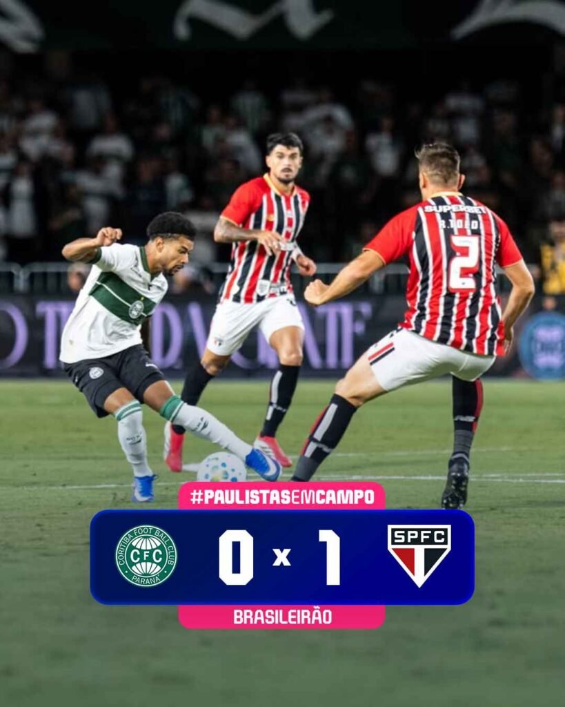 O São Paulo venceu o Coritiba por 1 a 0, nesta quarta-feira (25), no estádio Couto Pereira, pela quarta rodada do Campeonato Brasileiro.