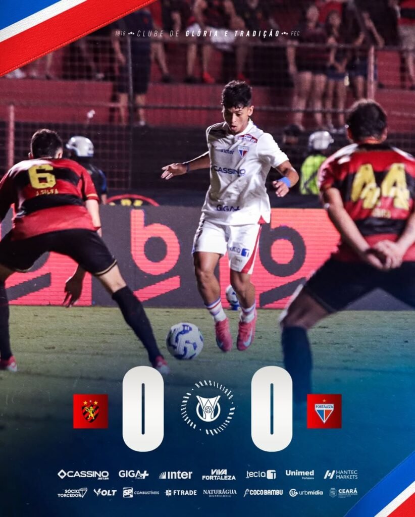 Disputa de bola entre Sport e Fortaleza – Crédito: @fortalezaec Sport e Fortaleza empataram em 0 a 0, neste sábado (26), na Ilha do Retiro, no Recife, pela sexta rodada do Campeonato Brasileiro. O resultado mantém o rubro-negro na lanterna do campeonato, com dois pontos. o Fortaleza é o 14º, com seis. O tricolor cearense […]