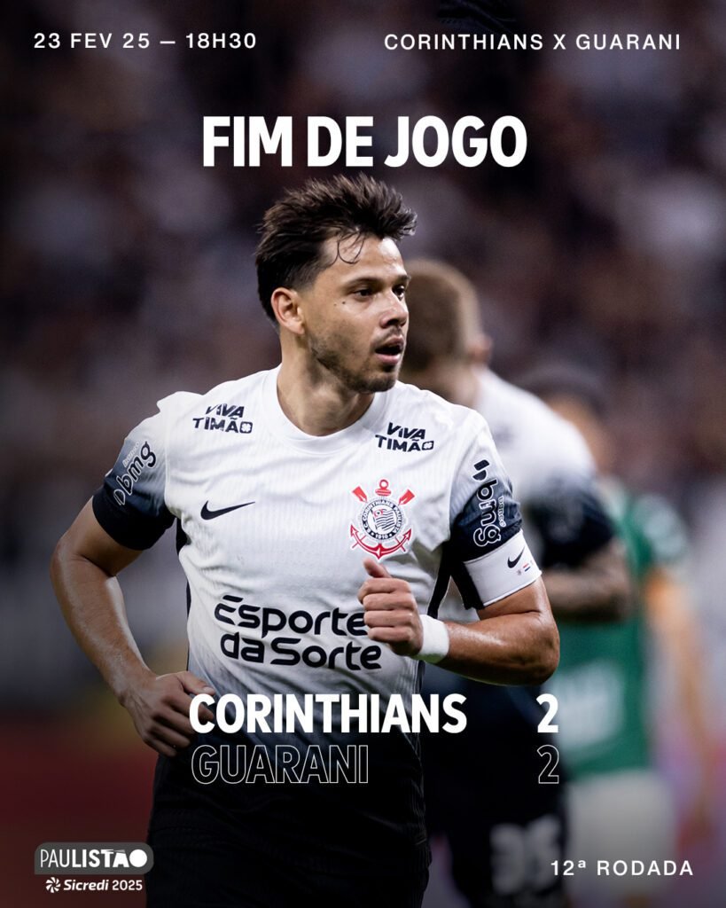 Corinthians e Guarani empataram em 2 a 2, neste domingo (23), na Neo Química Arena, zona leste de São Paulo, pela última rodada da primeira fase do Campeonato Paulista. O resultado leva o Corinthians aos 27 pontos, na liderança do Grupo A, fechando a primeira fase com a melhor campanha da competição. O Timão vai […]