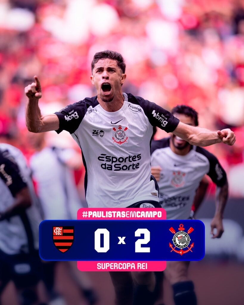 O Corinthians venceu o Flamengo por 2 a 0, neste domingo (1), no estádio Mané Garrincha, em Brasília, e conquistou o título da Supercopa Rei.