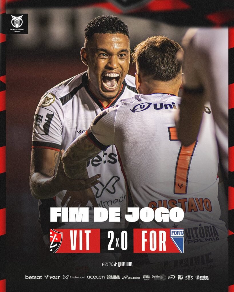O Vitória venceu o Fortaleza por 2 a 0, neste domingo (1), no Barradão, em Salvador, pela 36ª rodada do Campeonato Brasileiro. Com o resultado, o time baiano ganha duas posições e aparece em 10º, com 45 pontos. O Fortaleza cai uma e fica em quinto, com 65. O destaque do jogo foi o atacante […]
