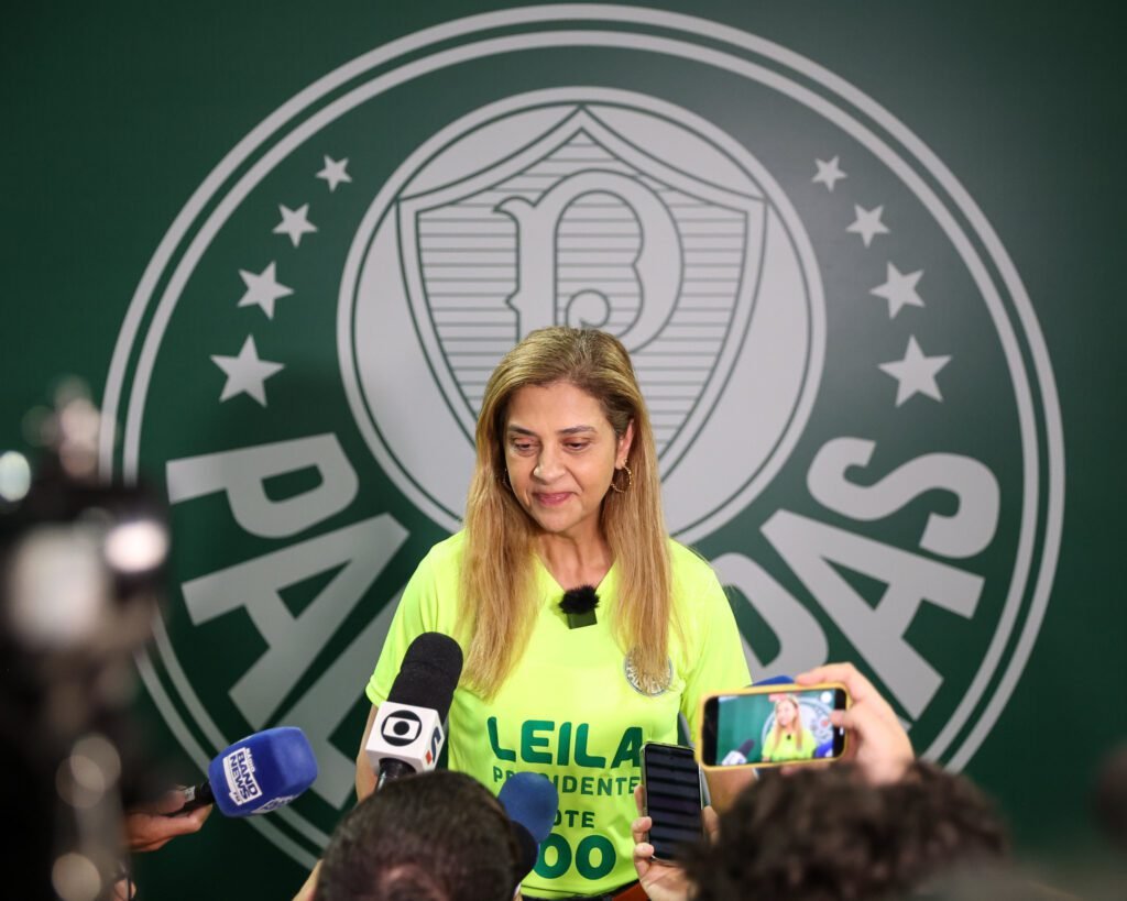 A empresária Leila Pereira, 60 anos, foi reeleita presidente do Palmeiras neste domingo (24), para os próximos três anos, após votação dos sócios no ginásio do clube, na zona oeste da capital paulista.