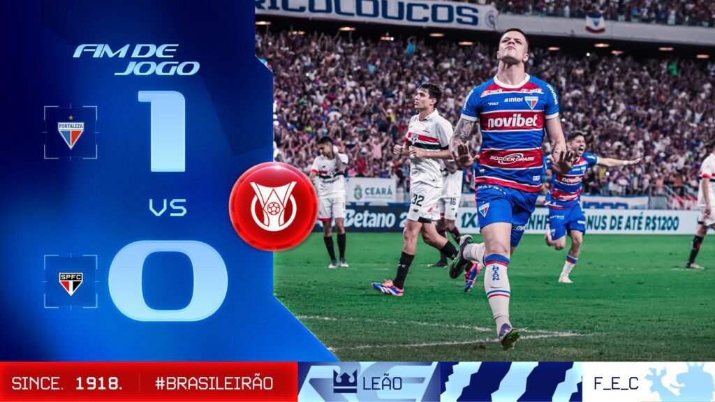 O Fortaleza venceu o São Paulo por 1 a 0, neste sábado (27), na Arena Castelão, em Fortaleza, pela 20ª rodada do Campeonato Brasileiro. A vitória mantém o tricolor cearense dentro do G4, com 36 pontos em 19 partidas. O time também mantém a invencibilidade dentro de casa. O São Paulo segue sem sexto, com […]