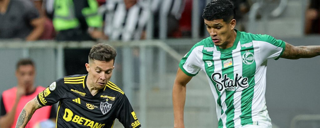 Bernard disputa a bola com Lucas Barbosa – Crédito: Pedro Souza / Atlético Juventude e Atlético-MG empataram em 1 a 1, nesta terça-feira (16), no estádio Mané Garrincha, em Brasília, pela 17ª rodada do Campeonato Brasileiro. Com o resultado, as duas equipes ficam estagnadas na classificação. O Galo é o 10º, com 22 pontos em […]