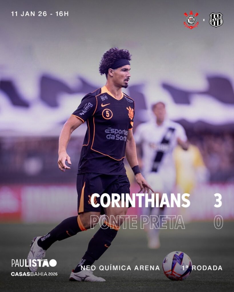 O Corinthians venceu a Ponte Preta por 3 a 0, neste domingo (11), na Neo Química Arena, zona leste de São Paulo, pela primeira rodada do Campeonato Paulista.