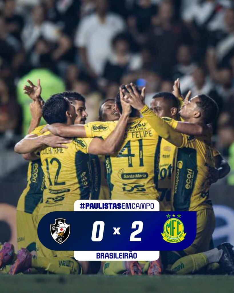 Jogadores do Mirassol comemoram a vitória – Crédito: Pedro Zacchi/Agência Mirassol O Mirassol venceu o Vasco por 2 a 0, nesta terça-feira (2), no estádio de São Januário, no Rio de Janeiro, pela 37ª rodada do Campeonato Brasileiro. A vitória garante o Mirassol na fase de grupos da Libertadores. O time chega aos 66 pontos, […]