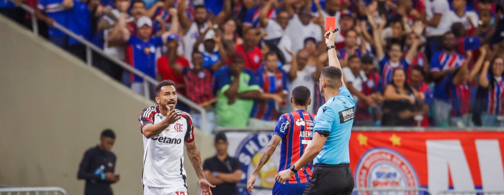 Flamengo tem dois expulsos, perde do Bahia e cai para a vice-liderança do Brasileirão