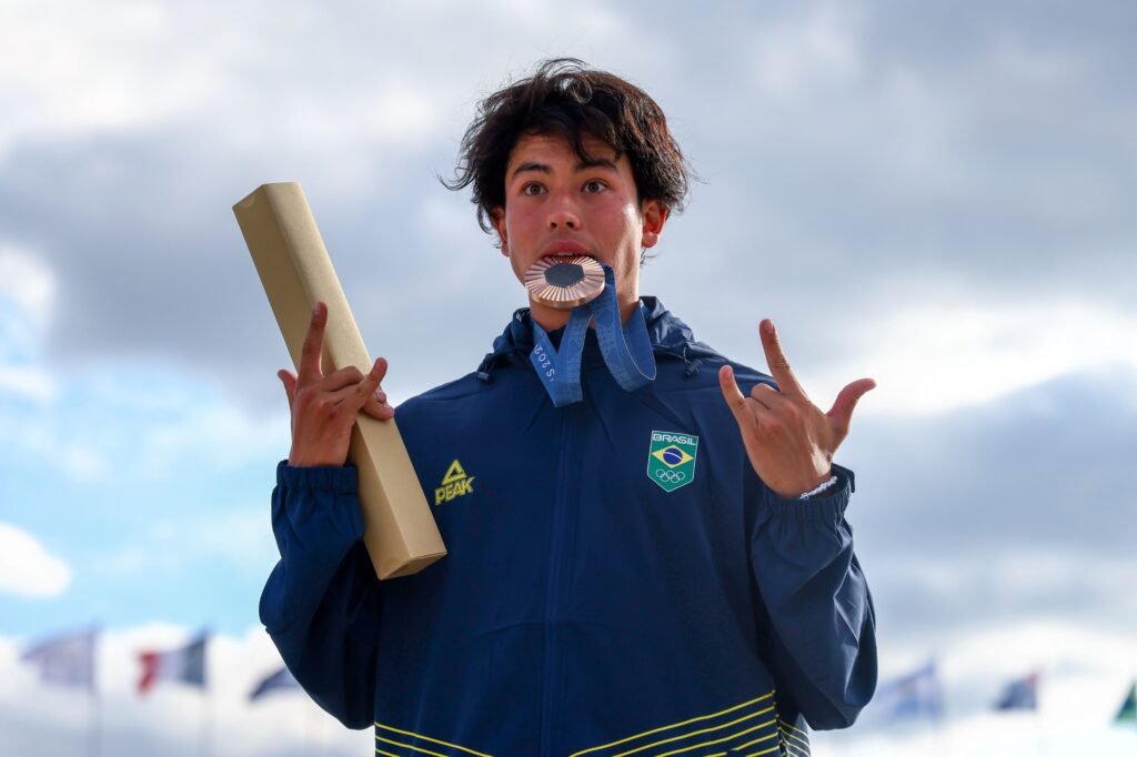 Augusto Aikio, o Japinha, com a medalha de bronze – Crédito: Luiza Moraes/COB O brasileiro Augusto Akio, o Japinha, conquistou a medalha de bronze no skate park masculino, nesta quarta-feira (7), nos Jogos Olímpicos de Paris. Esta é a 14ª medalha do Brasil na Olimpíada de Paris, a segunda no skate. Rayssa Leal já havia […]