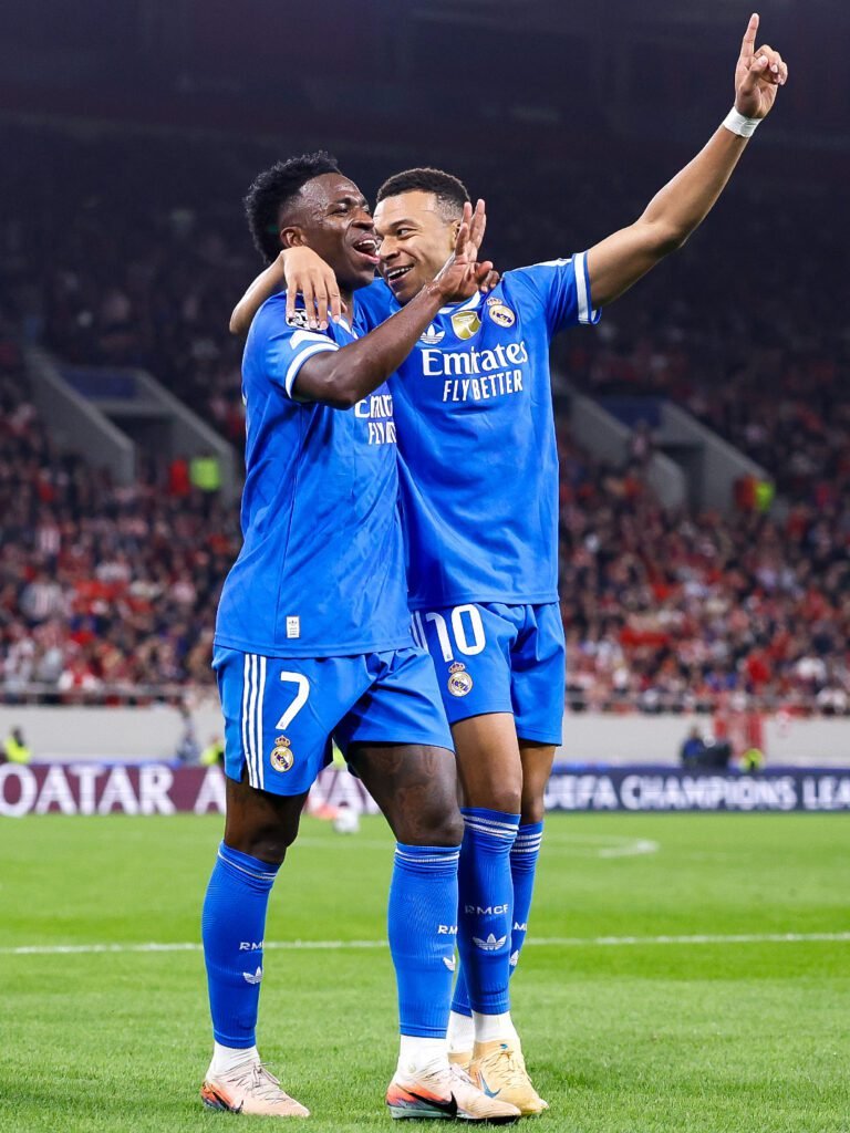 Mbappé dá show e marca quatro na vitória do Real Madrid sobre o Olympiacos