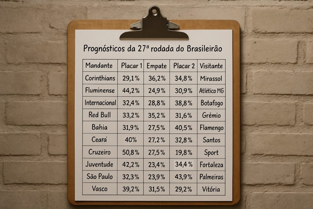 A 27ª rodada do Campeonato Brasileiro começa neste sábado (4), com quatro partidas. Porém, os duelos que podem mexer na parte de cima da classificação ocorrem no domingo (5). Líder com 55 pontos, o Flamengo visita o Bahia, na Arena Salvador. Segundo os prognósticos do Bola em Campo, com base no desempenho das equipes no […]