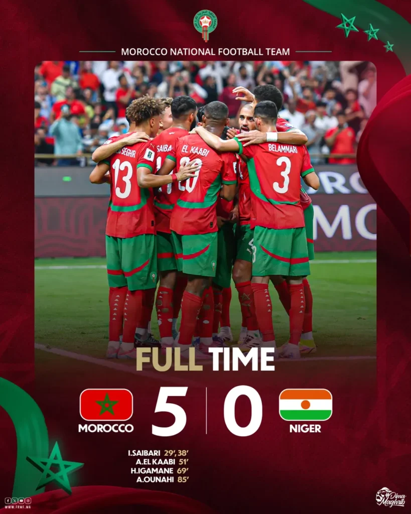 Marrocos goleou Níger por 5 a 0, nesta sexta-feira (5), no estádio Príncipe Moulay Abdellah, em Rabat, e garantiu a classificação para a Copa do Mundo de 2026. Os gols foram marcados por Saibari (2), El Kaabi, Igamane e Ounahi. A seleção manteve a liderança do Grupo E das eliminatórias africanas com 18 pontos, oito […]