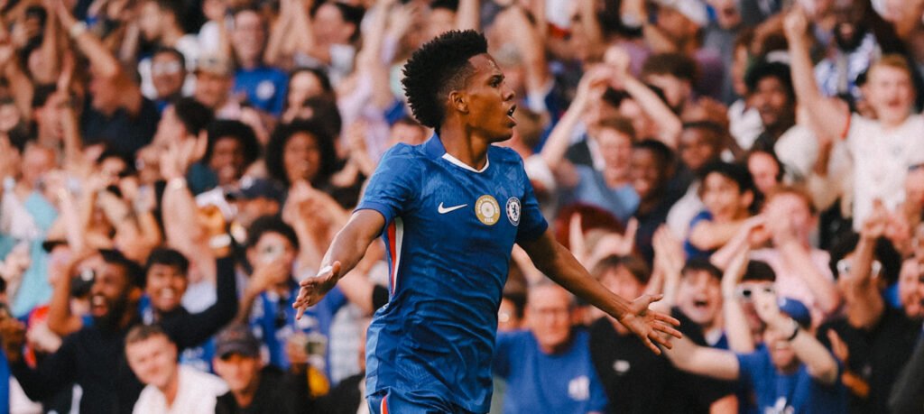 O atacante Estêvão estreou no Chelsea marcando gol na vitória por 2 a 0 sobre o Bayer Leverkusen, nesta sexta-feira (8), no estádio Stamford Bridge, em Londres, em partida amistosa de pré-temporada.
