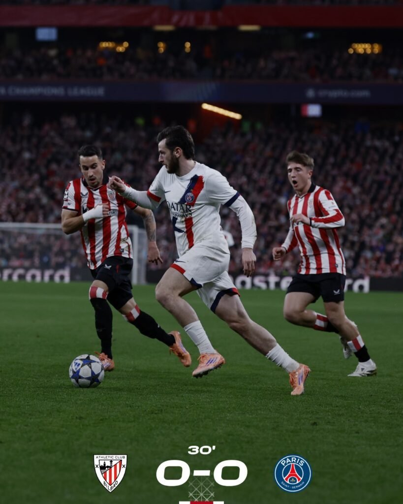 Athletic de Bilbao e PSG empataram em 0 a 0, nesta quarta (10), no estádio San Mamés, pela quarta rodada da Liga dos Campeões.