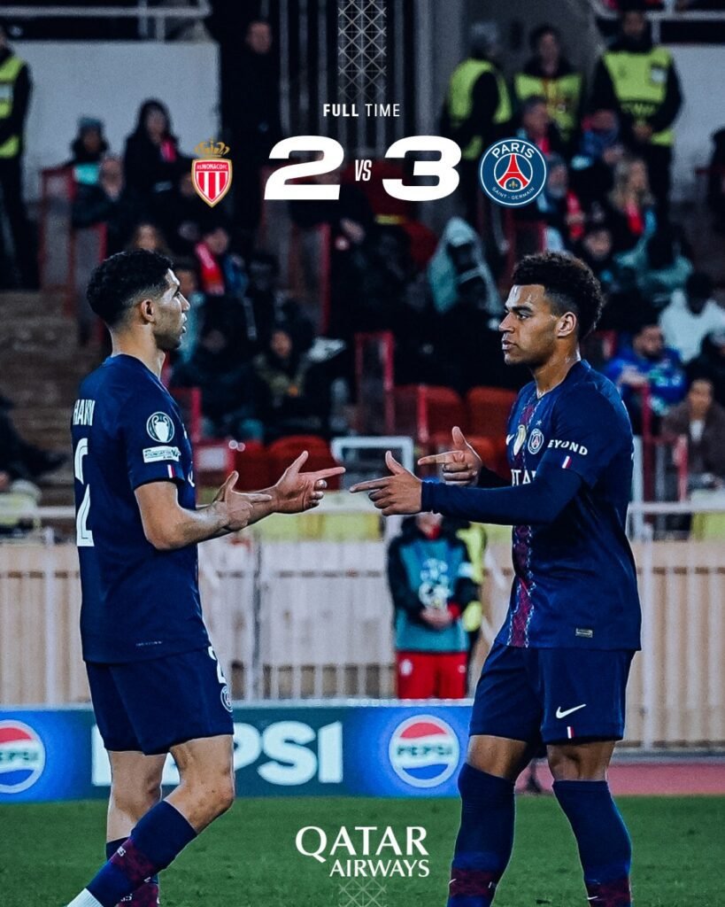 O PSG venceu o Mônaco por 3 a 2, nesta terça-feira (17), no estádio Luis II, pelos playoffs da Liga dos Campeões.