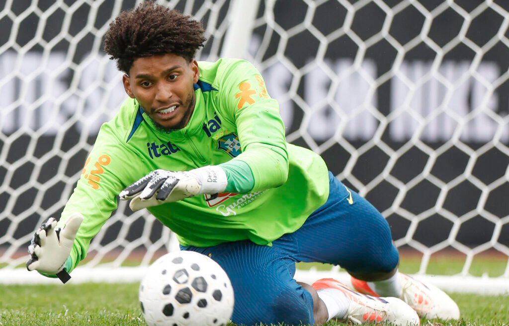 Hugo Souza treina como titular antes do embarque da seleção para o Japão