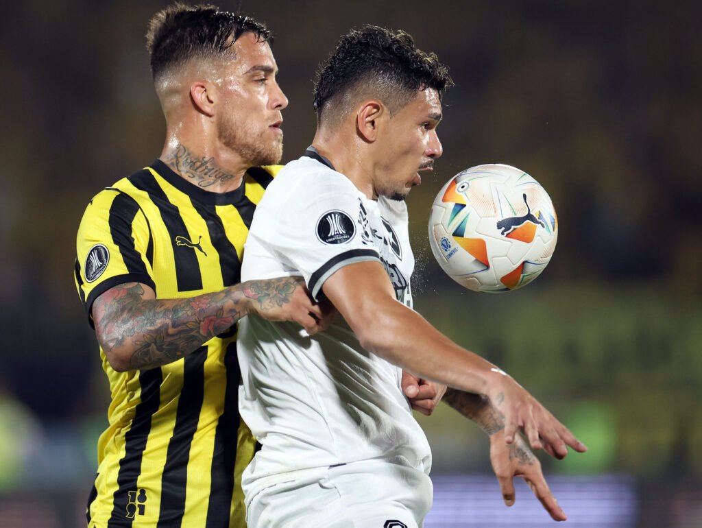 Tiquinho Soares sofre a marcação de Méndez – Crédito: Vitor Silva/Botafogo O Botafogo foi derrotado por 3 a 1 pelo Peñarol, nesta quarta-feira (30), no estádio Centenário, em Montevidéu, mas carimbou a sua vaga na final da Libertadores pela primeira vez na história. Agora, o alvinegro fará o duelo brasileiro na decisão contra o Atlético-MG, […]