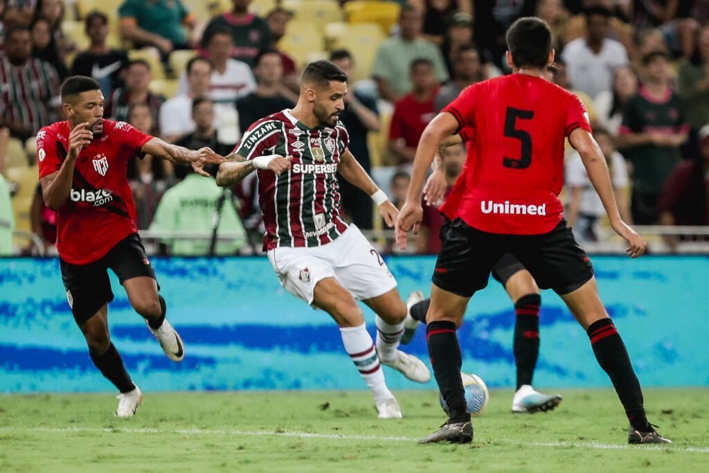 Renato Augusto, entre dois marcadores do Atlético-GO – Crédito: Lucas Merçon/Fluminense O Atlético-GO venceu o Fluminense por 2 a 1, de virada, neste sábado (15), no estádio do Maracanã, no Rio de Janeiro, pela nona rodada do Campeonato Brasileiro. Com a vitória, o Atlético-GO sai da zona do rebaixamento e salta para a 13ª colocação, […]