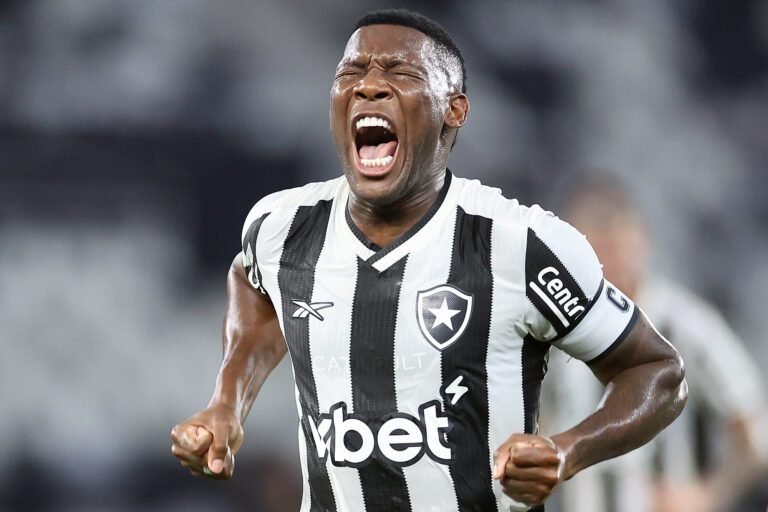 Patrick de Paula comemora o primeiro gol do Botafogo - Crédito: Vitor Silva/Botafogo