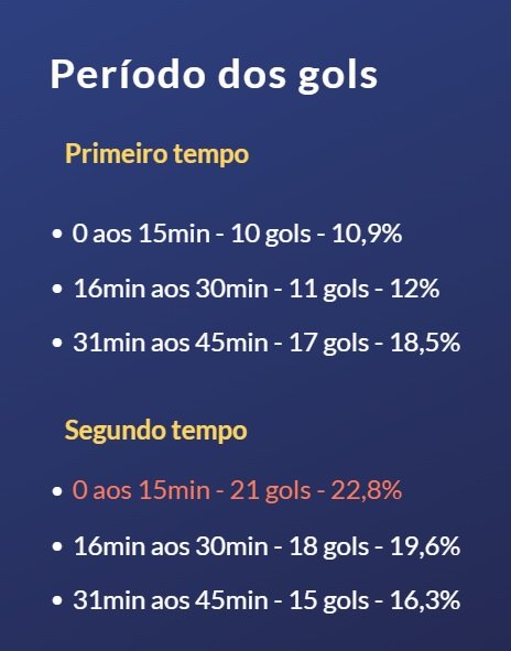 Em 38 partidas disputadas até agora, foram anotados 92 gols, uma média de 2,4 por jogo. No total, 58% dos gols foram marcados no segundo tempo, a maioria deles nos primeiros 15 minutos da etapa (22,8%).