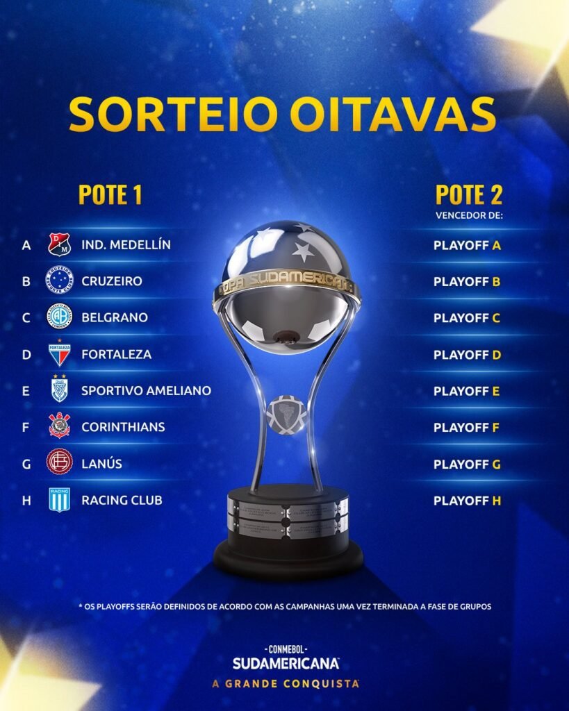 As oitavas de final da Copa Sul-Americana estão marcadas para os dias 14 e 21 de agosto.