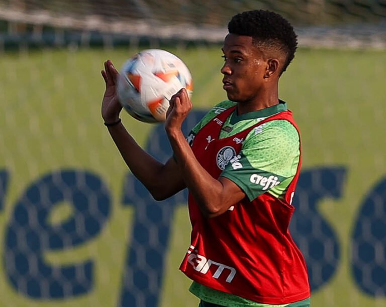 O atacante Estêvão, em treino do Palmeiras - crédito: Cesar Greco/Palmeiras