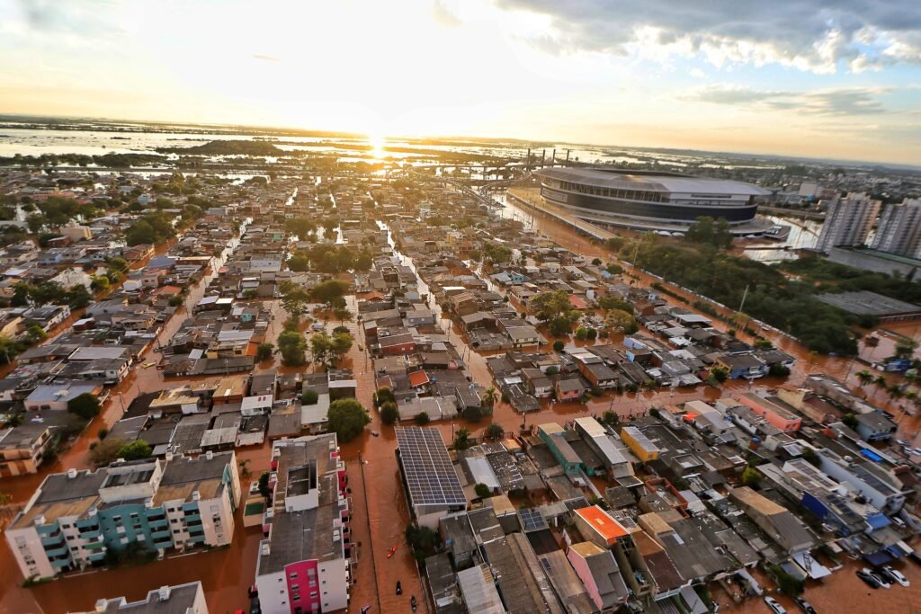 A Arena Grêmio e o estádio do Beira-Rio foram invadidos pela água das enchentes.
