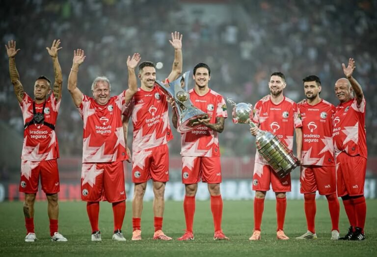 Antes do jogo, Zico e o ex-lateral Júnior entraram em campo com os troféus das duas competições e entregaram aos jogadores do Flamengo, simbolizando um encontro de gerações.