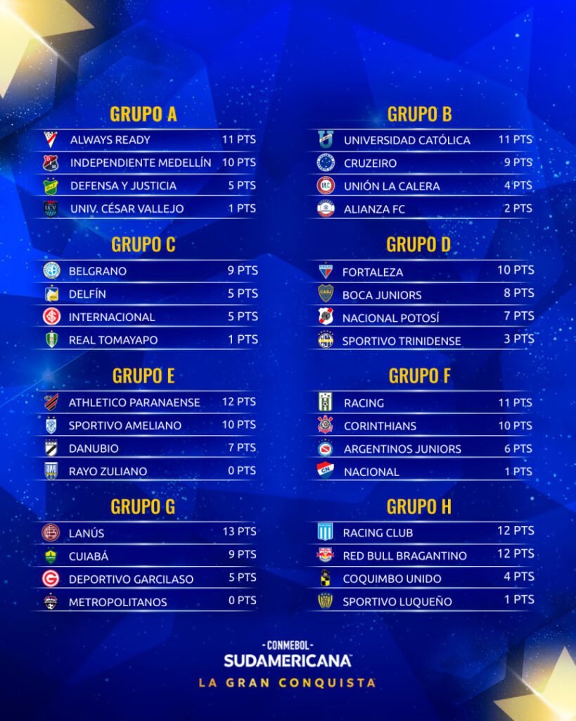 É o único brasileiro com a situação definida na Sul-Americana. Ficou com a segunda colocação no Grupo G, com nove pontos, quatro a menos que Lanus-ARG. Assim, mesmo vencendo os argentinos nesta quarta, em Buenos Aires, irá para o play-off contra um terceiro colocado da Libertadores.