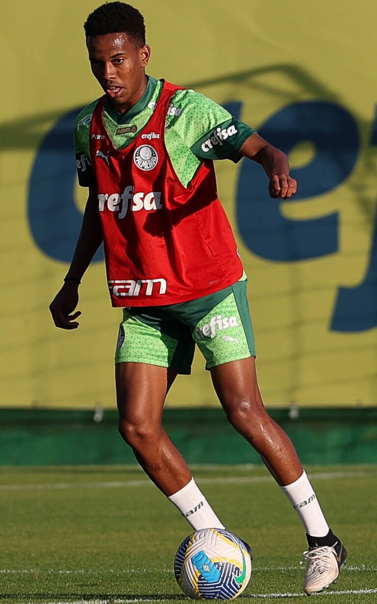 O atacante Estêvão, em treino do Palmeiras - Crédito: Cesar Greco/Palmeiras