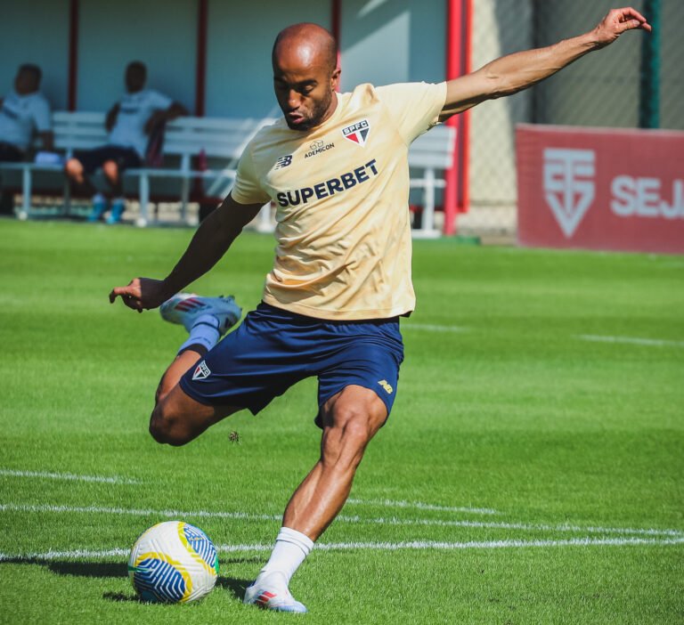 O atacante Lucas, em treino do São Paulo - Crédito: Erico Leonan / saopaulofc.net