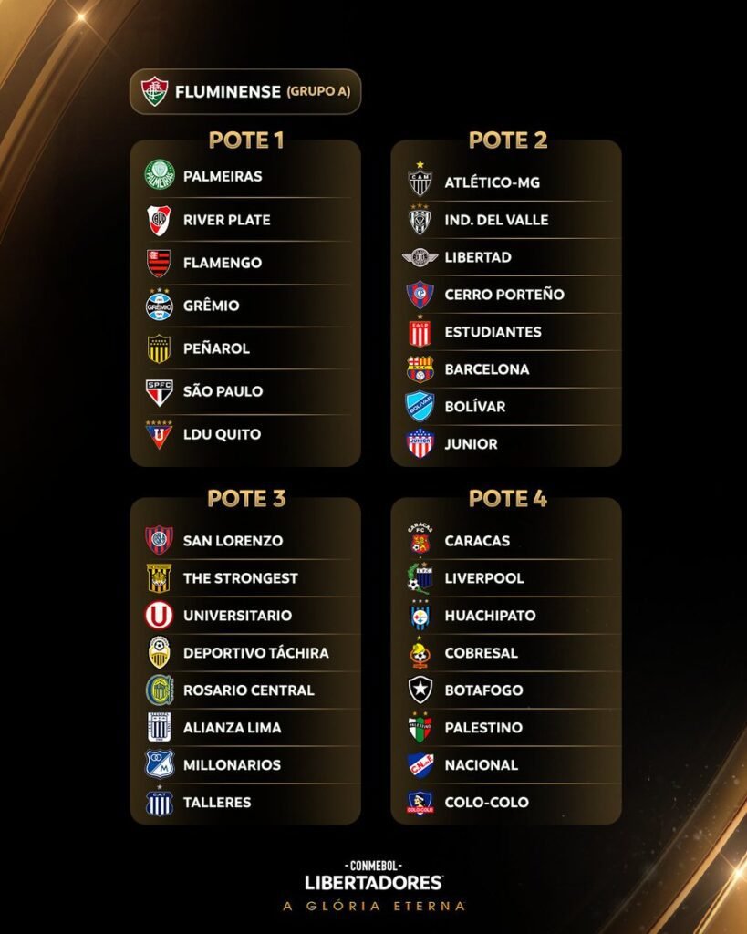 A Conmebol também vai sortear na segunda-feira a fase de grupos da Copa Sul-Americana, que contará com seis times brasileiros: Athletico-PR, Corinthians, Cruzeiro, Cuiabá, Fortaleza e Internacional.