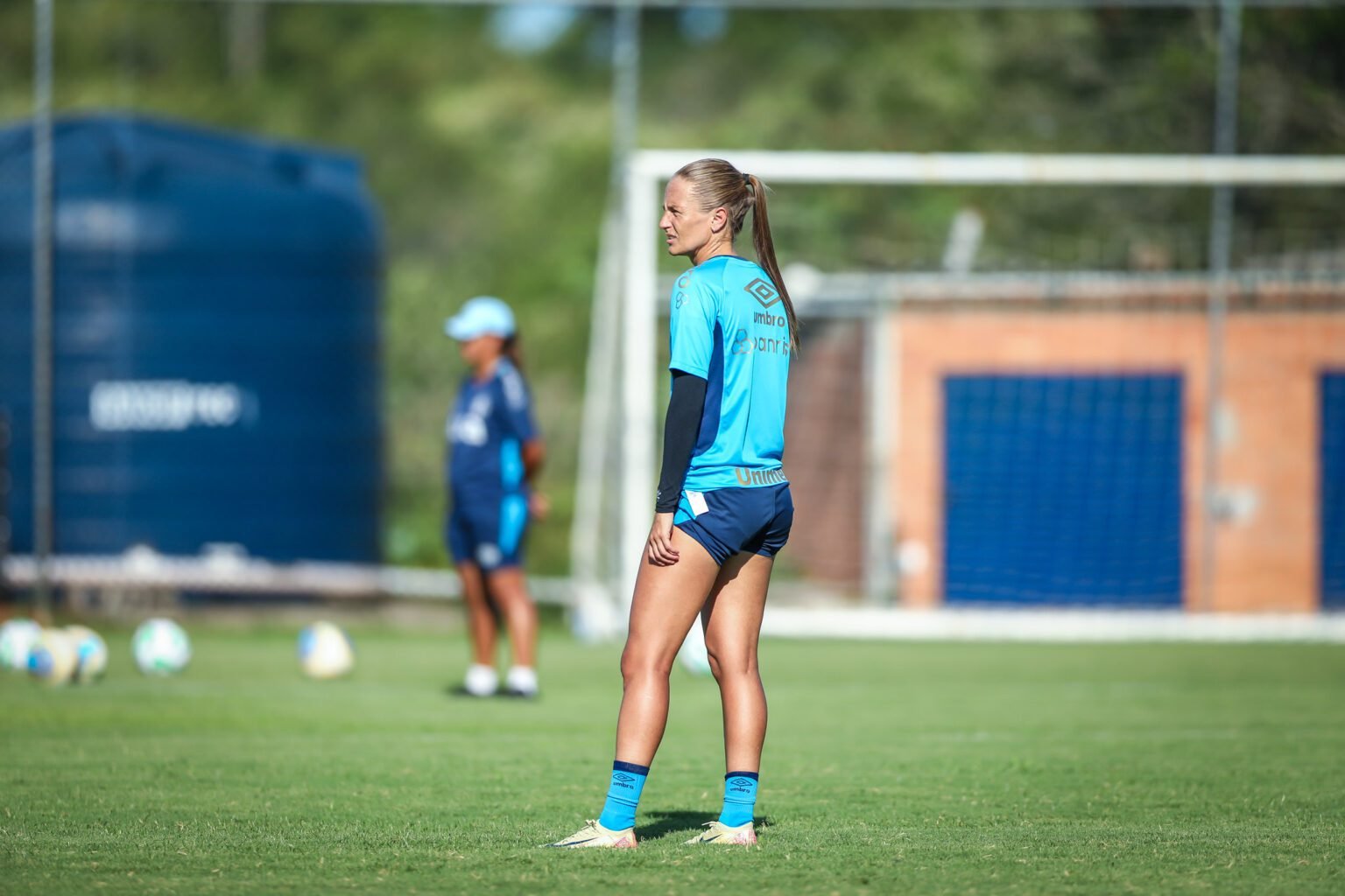 A meio-campista Amanda, em treino do Grêmio - Crédito: Caroline Motta / Grêmio FBPA