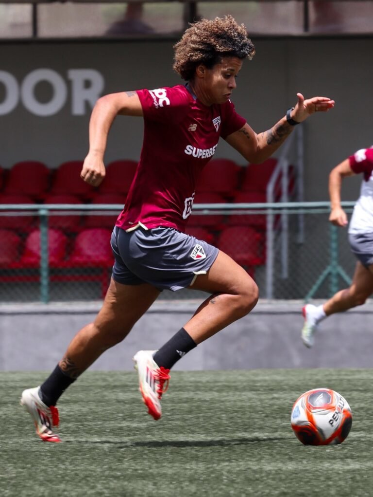 A meio-campista Aline Milene, em treino do São Paulo - Crédito: Aline Fiuza/São Paulo FC