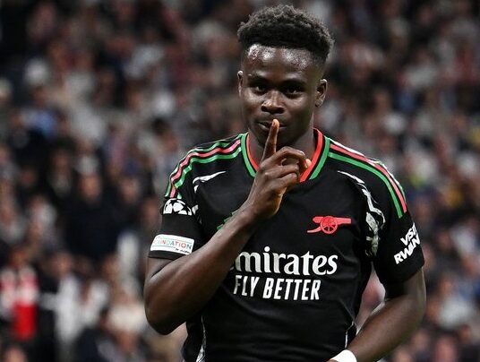 Saka comemora o primeiro gol do Arsenal - Crédito: @arsenal