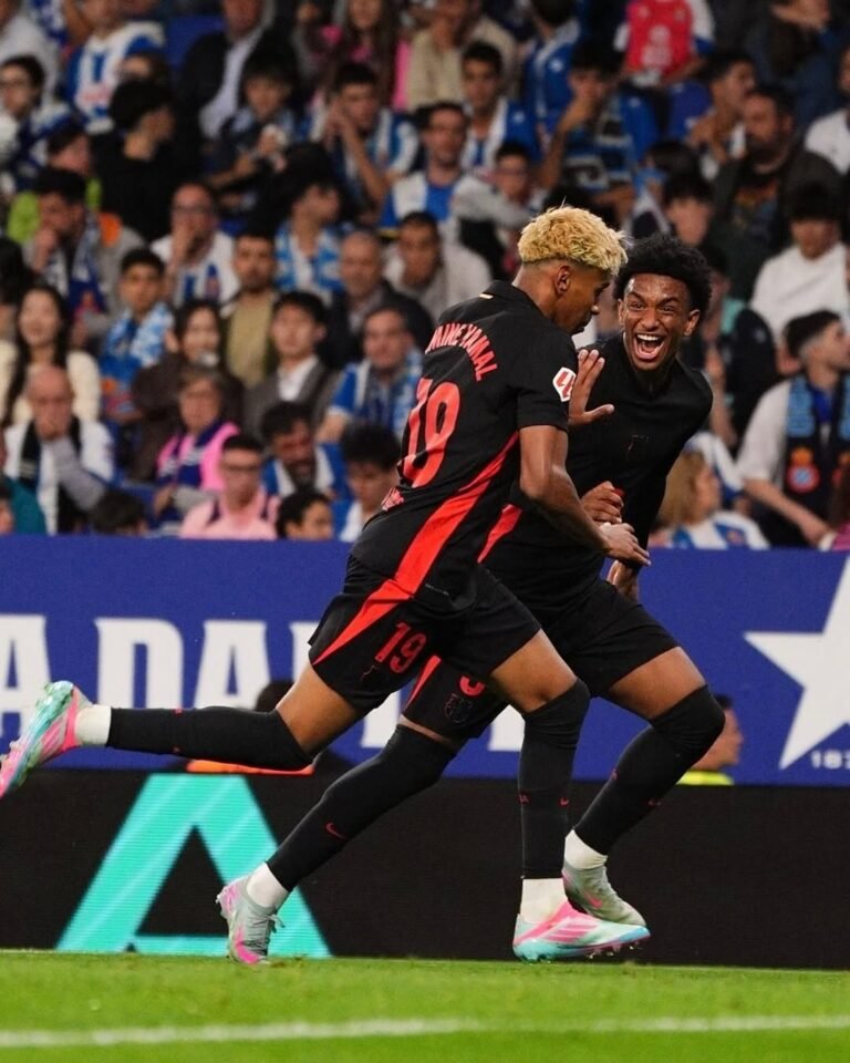 Yamal comemora com Balde o primeiro gol do Barcelona - Crédito: @fcbarcelona