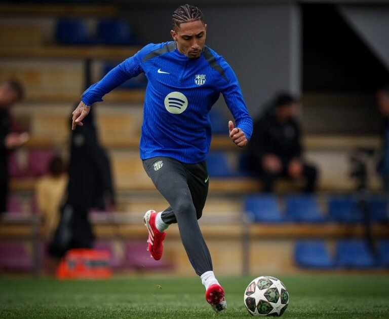 O brasileiro Raphinha, em treino do Barcelona - Crédito: @fcbarcelona