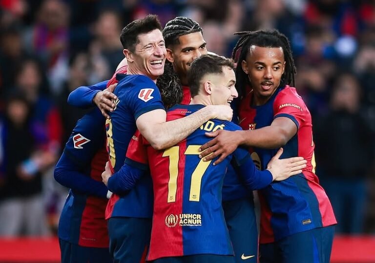 No segundo tempo, o Barcelona continuou dominando e fez mais um aos 11min, com o zagueiro Ronald Araújo. Lewandowski marcou o dele quatro minutos depois, fechando a conta.