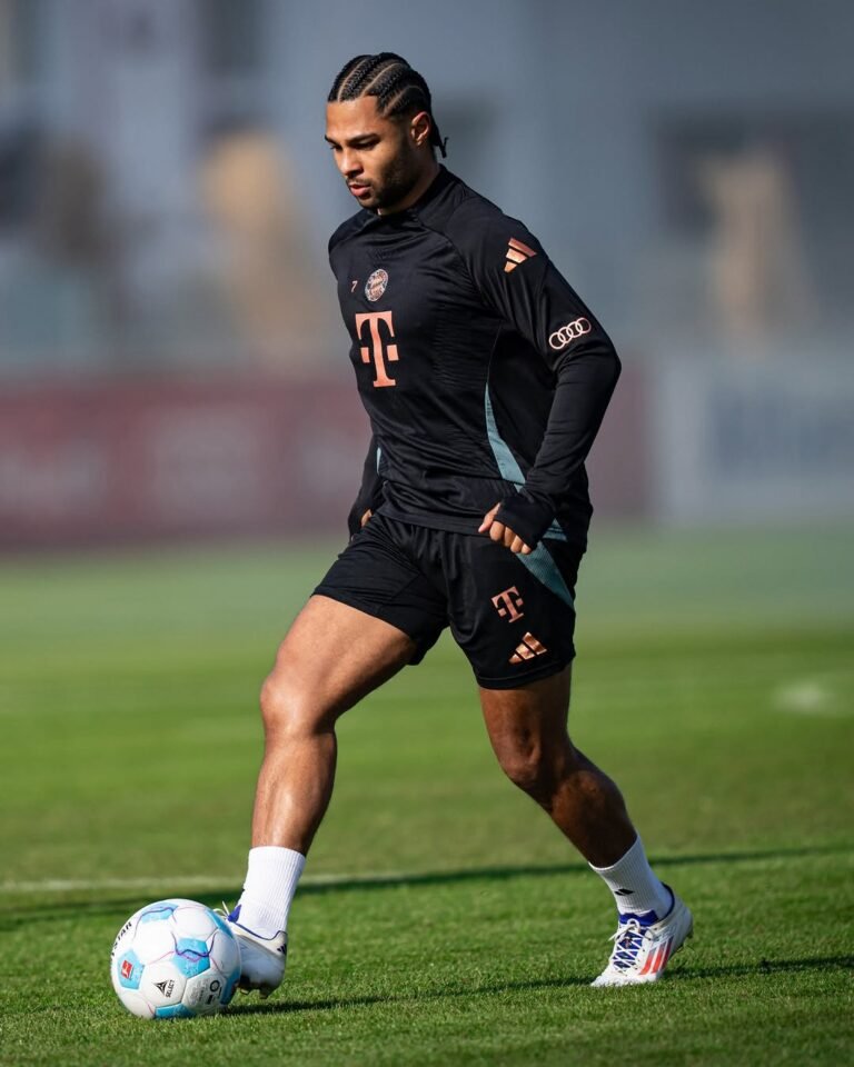 Gnabry, em treino do Bayern - Crédito: @cbayern