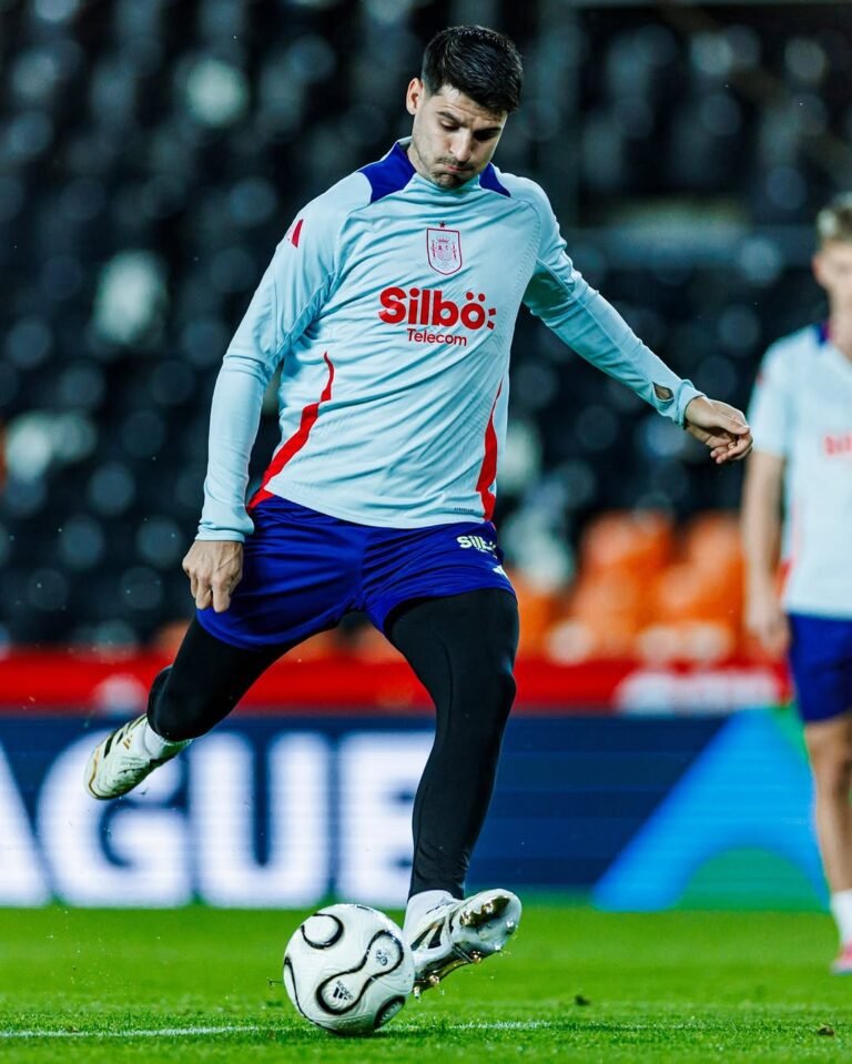 O atacante Morata, durante treino da seleção espanhola - Crédito: @sefutbol
