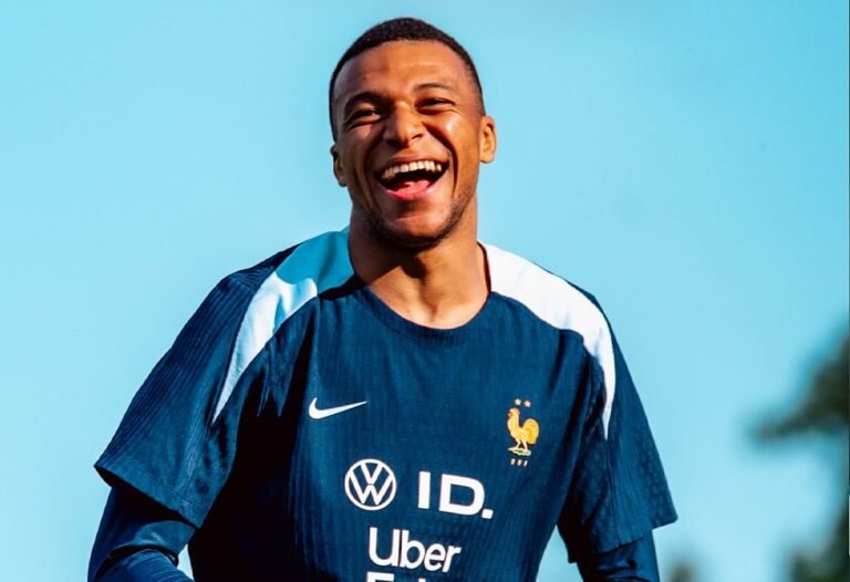 O astro Mbappé, em treino da seleção francesa - Crédito: @equipedefrance