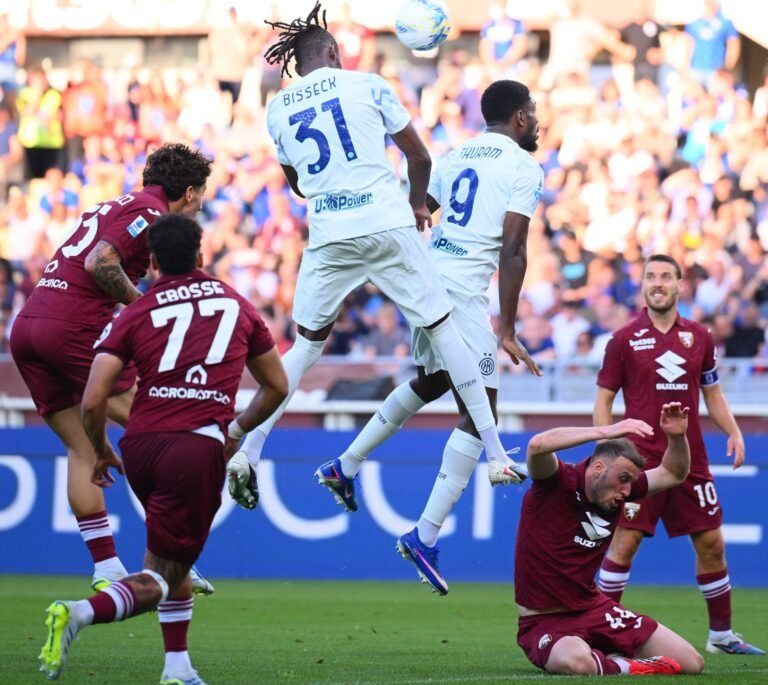 A Inter chegou a abrir 2 a 0 com Marcus Thuram e Yann Bisseck. Mas o Torino foi buscar o empate com Simeone e Vlasic, este de pênalti.