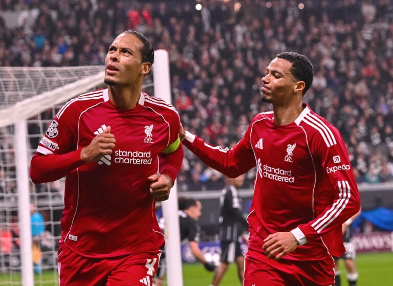 O Liverpool goleou o Eintracht por 5 a 1, de virada, nesta quarta (22), no Deutsche Bank Park, em Frankfurt, pela terceira rodada da Liga dos Campeões.