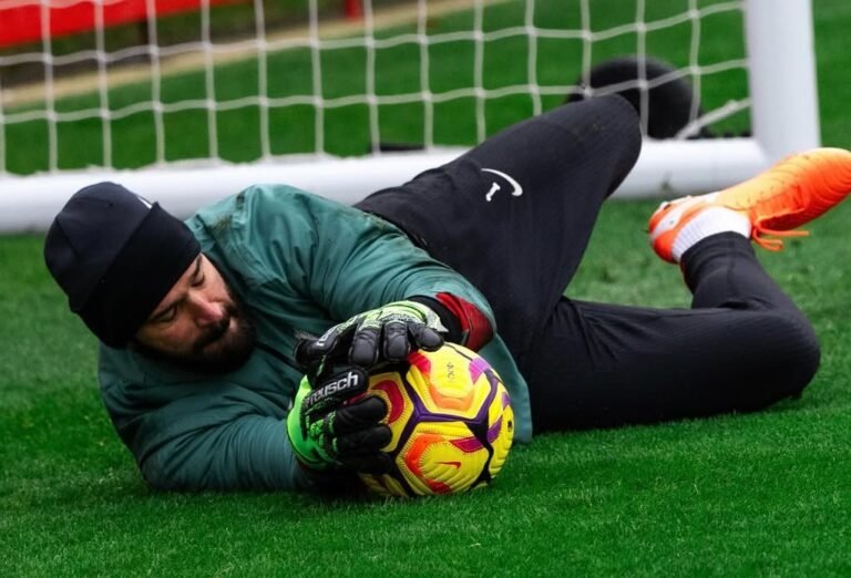 O goleiro Alisson, em treino do Liverpool - Crédito: @liverpoolfc