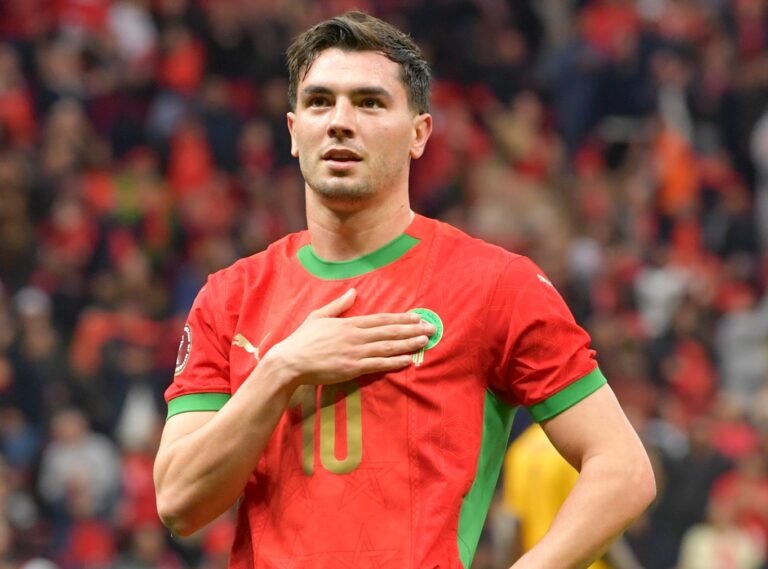 Brahim Díaz comemora o gol da vitória marroquina - Crédito: @equipedumaroc