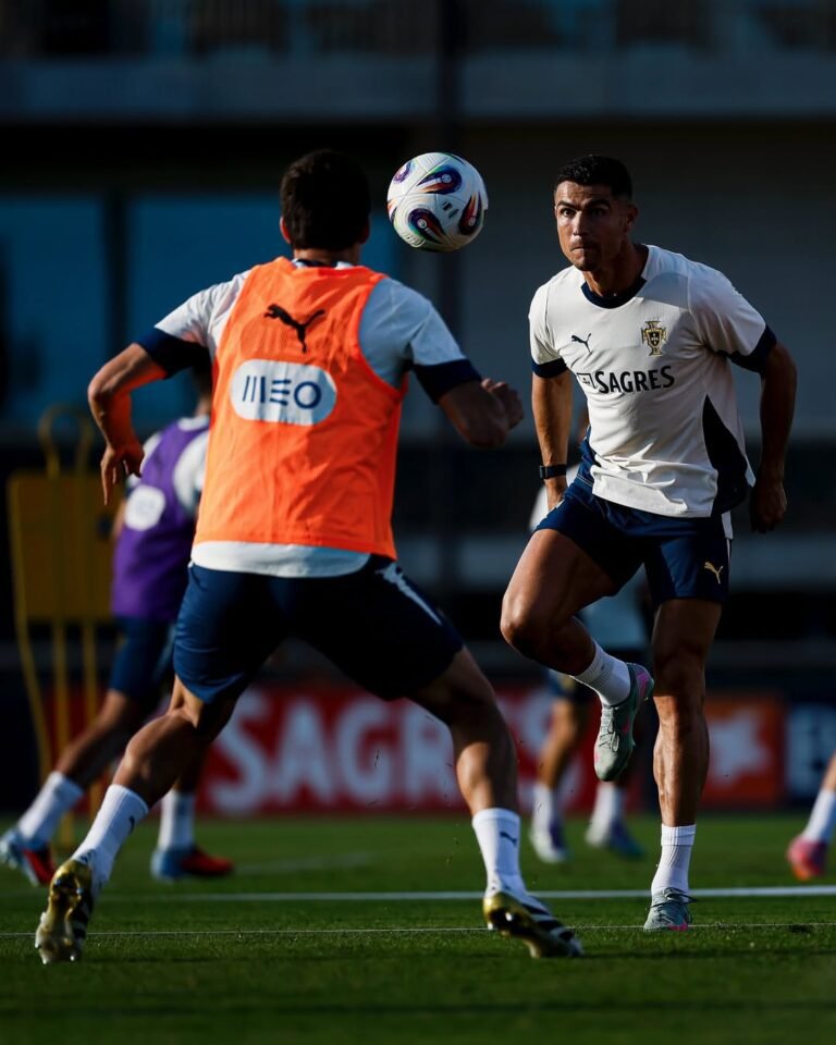 Cristiano Ronaldo, durante treino da seleção portuguesa - Crédito: @portugal