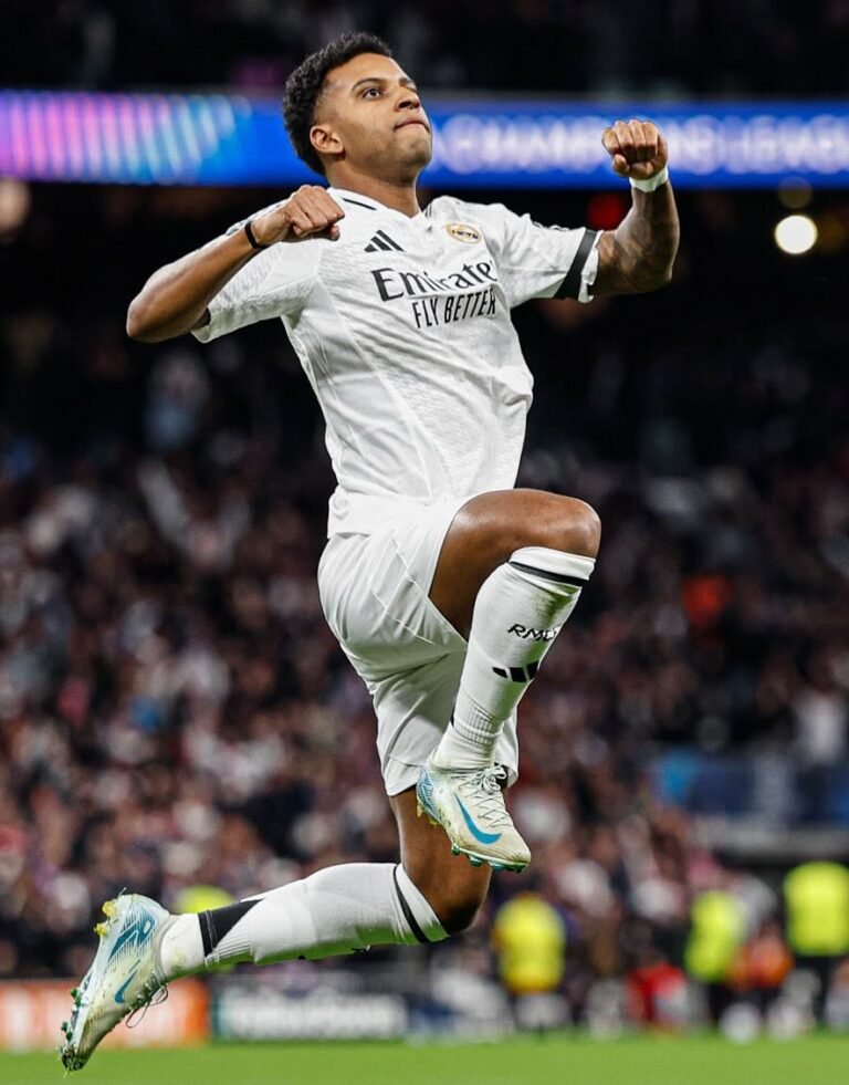 O Real abriu o placar logo no começo do jogo, com Rodrygo. Ele recebeu na direita, cortou para o meio e bateu cruzado da entrada da área.